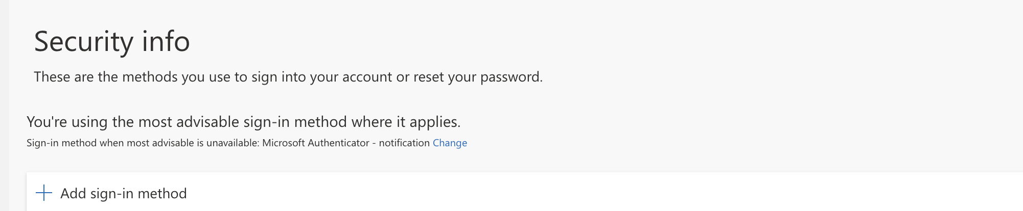 Click Add Sign In Method to add or you may edit existing methods. (Microsoft Authenticator is the preferred method)