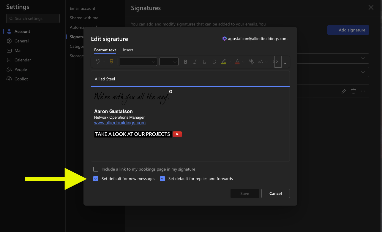 How to create a Signature in Outlook Online