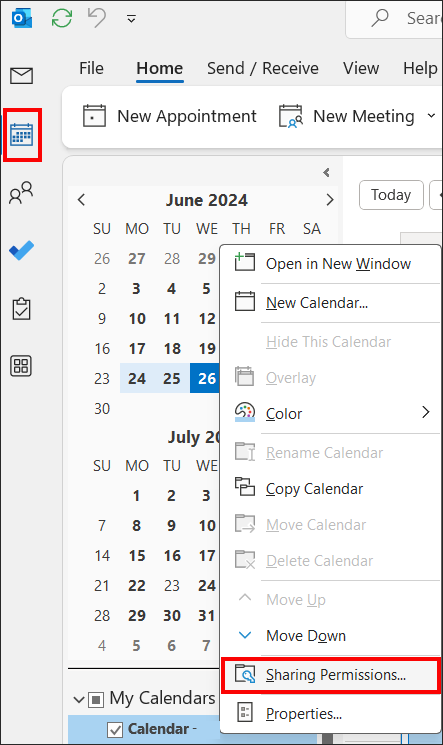 - Click the Calendar icon in the left-hand navigation pane